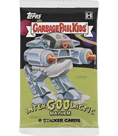 Stink up your GPK collection with 2023 Garbage Pail Kids: InterGOOlactic Mayhem, featuring some of the grossest, snottiest, craziest gags from Sci-Fi - including space travel, aliens and extraterrestrials, parallel universes and more!
