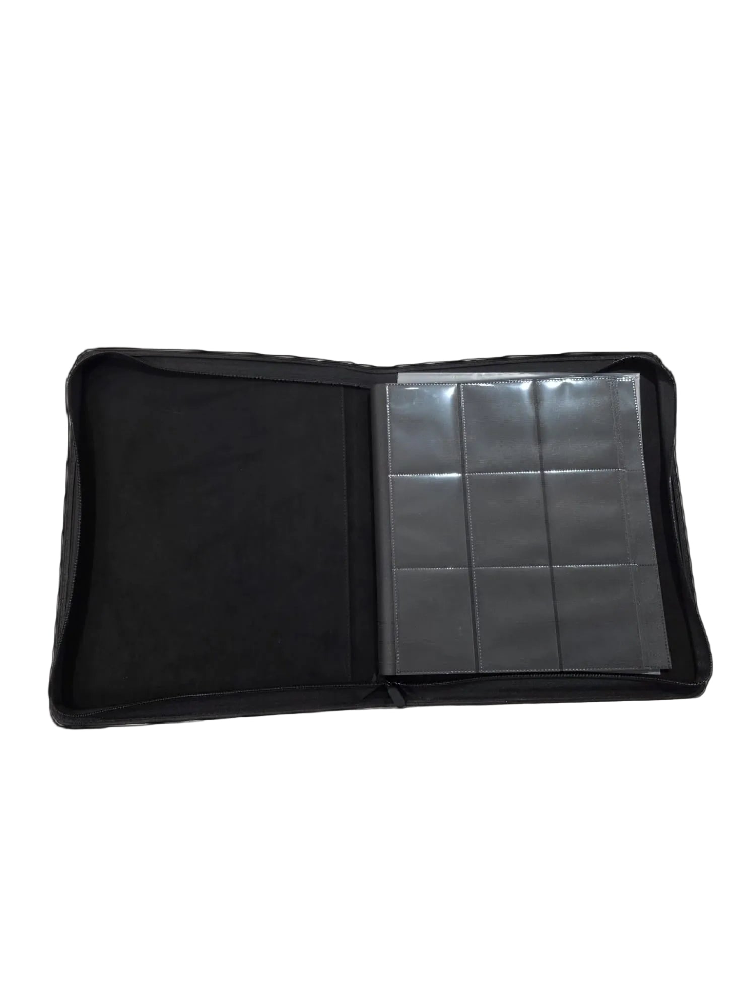 Card Binder Top Loader – Built-in 9-pocket top loader-compatible pages, rigid protective exterior, soft interior lining, zip closure, and holds up to 252 toploaders — ideal for storing and organizing your card collection.