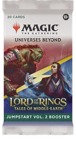 The Lord of the Rings: Tales of Middle-earth Jumpstart Vol. 2 Booster Box contains 18 The Lord of the Rings: Tales of Middle-earth Jumpstart Vol. 2 Boosters. Each booster has a theme. Just grab two packs and shuffle them together for wild combos and a unique gameplay experience thats great for a quick game, for long-time fans looking to jump back in, or for a fun way to learn to play. Each The Lord of the Rings: Tales of Middle-earth Jumpstart Vol. 2 Booster contain 20 Magic cards